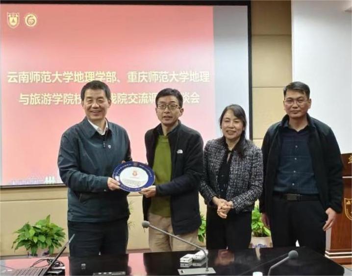 2025年11月3日下午,云南师范大学地理学部党委书记周妍、主任陈光杰、副主任孙俊等一行到访博彩论坛 。博彩论坛 党委书记鹿化煜教授、党委副书记毛予倩、副院长金晓斌教授、刘绍文教授等参加交流。副院长周雨霁...