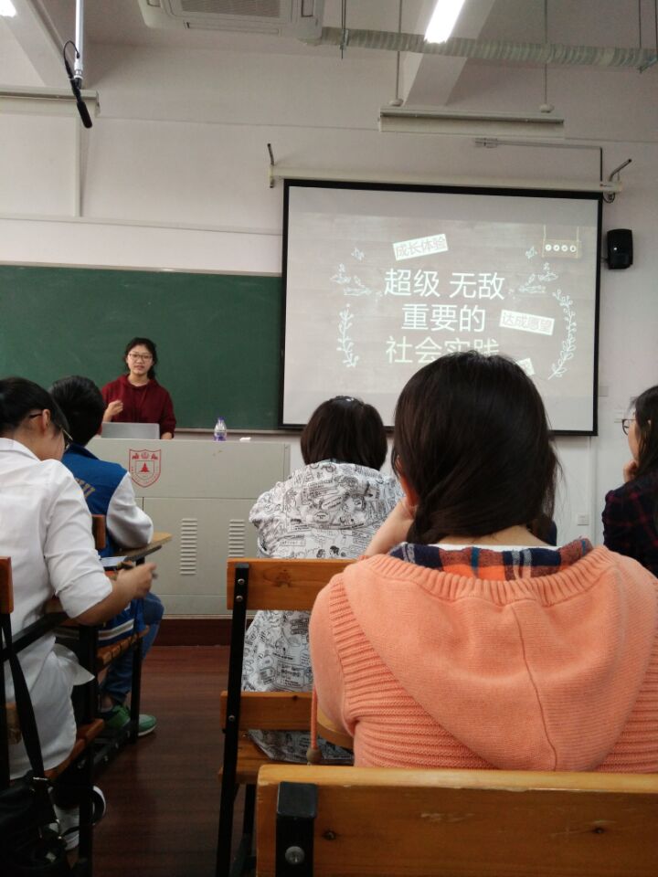 首先,刘民凝同学介绍了社会实践相关政策,他给大家介绍了南大往年和今年社会实践的情况、主要社会实践类型和工作日程表.