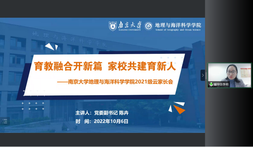 为进一步深入贯彻“育教融合,家校共建”的教育理念,促进博彩论坛 家庭共同携手,构建和谐的家校育人共同体,博彩论坛 于10月6日上午召开了“育教融合开新篇 家校共建育新人”——博彩论坛 2021级云家长会。博彩论坛 党委副书记陈卉老师、副院长金晓斌老师、本科生辅导员李岩老师以及2021级学生家长50余人共同参加了本次线上会议,会议由辅导员李岩主持。