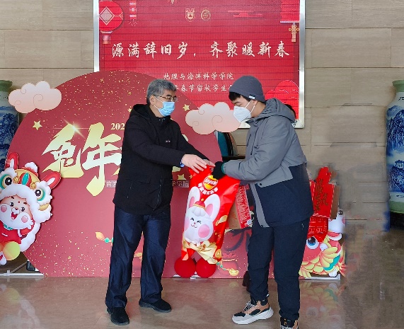 时至年关岁末,为加强对留校学生的关怀和帮助,2023年1月16日下午,博彩论坛 在仙林校区昆山楼举行“源满辞旧岁,齐聚暖新春”2023春节留校学生慰问活动。博彩论坛 党委书记李满春,院长鹿化煜,副院长王先彦、金晓斌,党委副书记陈卉,海洋科学系主任高建华,研究生辅导员牛战胜、张馨予齐聚昆山楼大厅,向同学们送去新春祝福和节日问候。