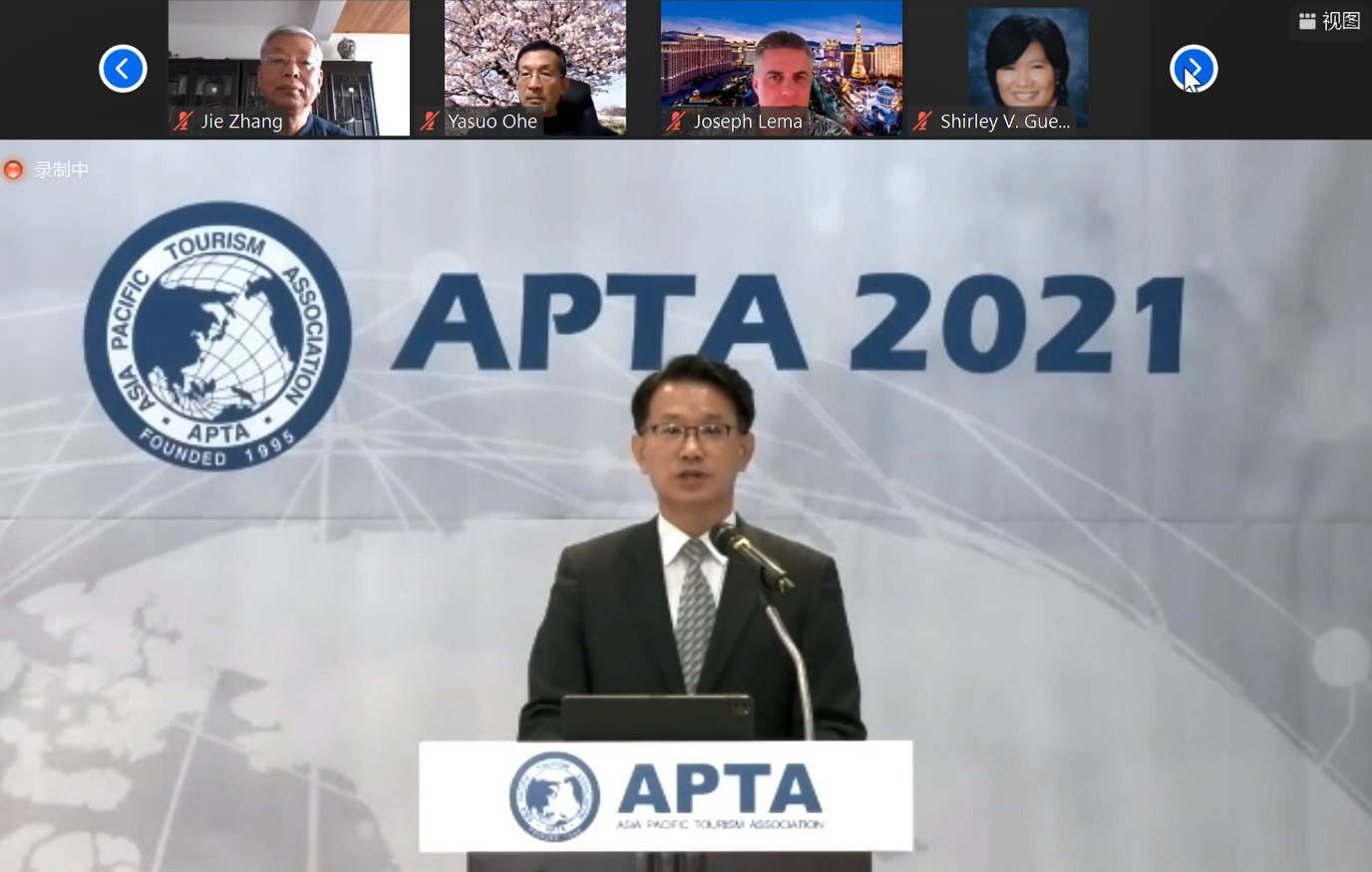 亚太旅游学会2021年会年度最佳论文颁奖环节(右上为张捷教授,左下为在读博士庄敏)