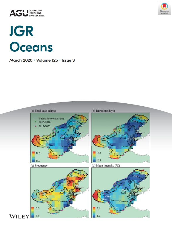 博彩论坛 邹欣庆教授课题组在中国近海海洋热浪研究取得重要进展,研究成果以 “Marine heatwaves in China's marginal seas and adjacent offshore waters: Past, Present, and Future” 为题于2020年3月17日在海洋科学类的顶级期刊“Journal of Geophysical Research: Oceans”上在线发表, 并被选为当期封面文章。论文第一作者为博士生姚玉龙,通讯作者为邹欣庆教授,合作单位包括中国海洋大学和美国亚利桑那大学。