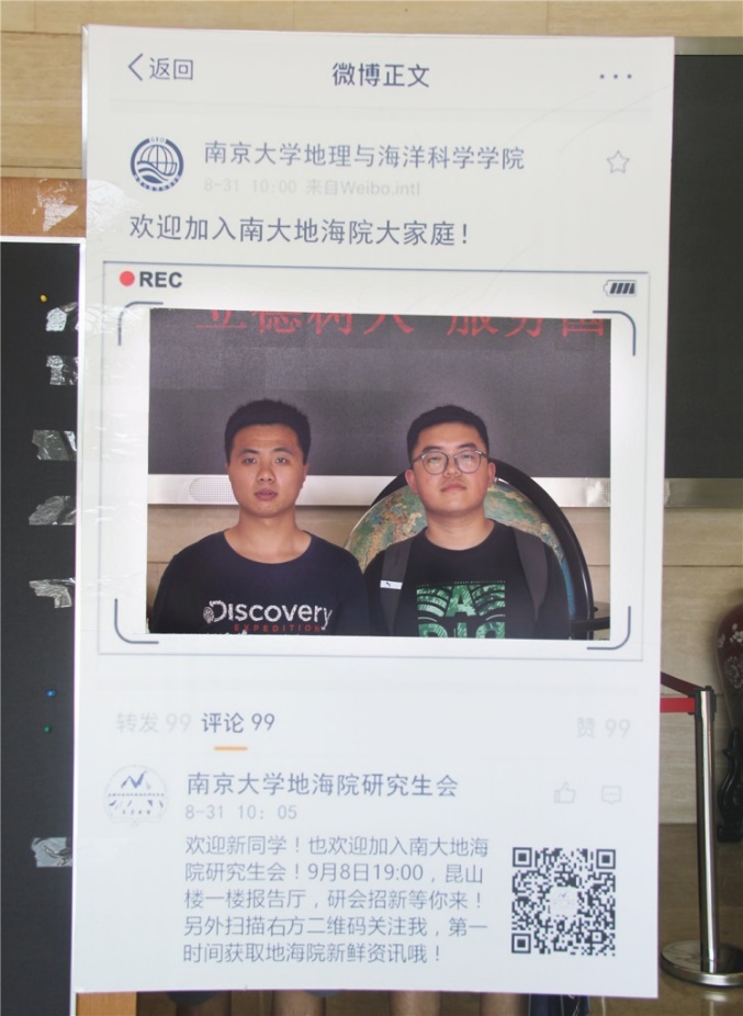 图3 博彩论坛 新生于迎新海报前合影留恋