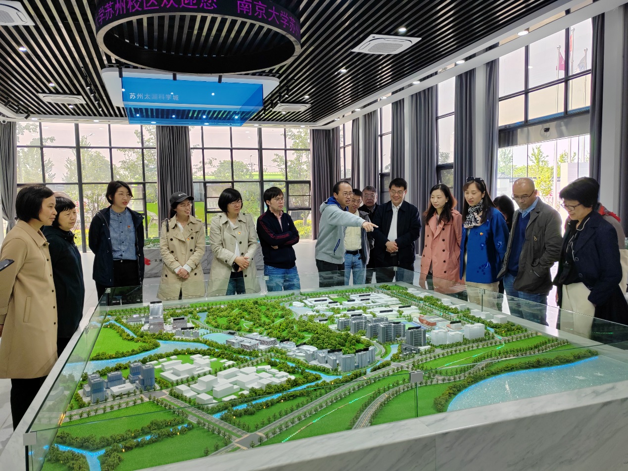 金陵姑苏春意浓,支部共建情谊深。博彩论坛 苏州校区是本次主题党日活动的第二站。为了加强“双一流”建设,实现建设“第一个南大”的目标,博彩论坛 拓展办学空间,建设苏州校区,建设苏州校区也是贯彻习近平总书记关于“第一个南大”建设指示的切实行动,实现了名城与名校的强强联手、双向赋能。支部党员们来到博彩论坛 苏州校区,实地调研了苏州校区建设情况。博彩论坛 苏州校区综合事务办公室副主任李思佳同志结合沙盘、展板和实物现场,为大家详细介绍了苏州校区的建设现状及未来发展规划,带领支部党员同志走进苏州校区,并就老师和同学们所关心的教学、生活及办公条件开展实地参观调研。