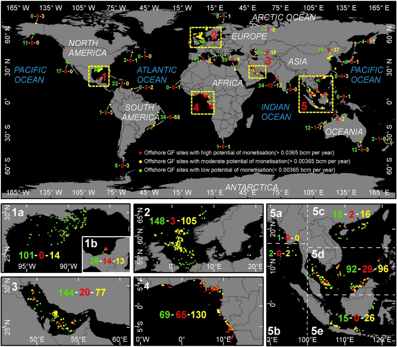 图6 全球离岸伴生天然气变现潜力分级