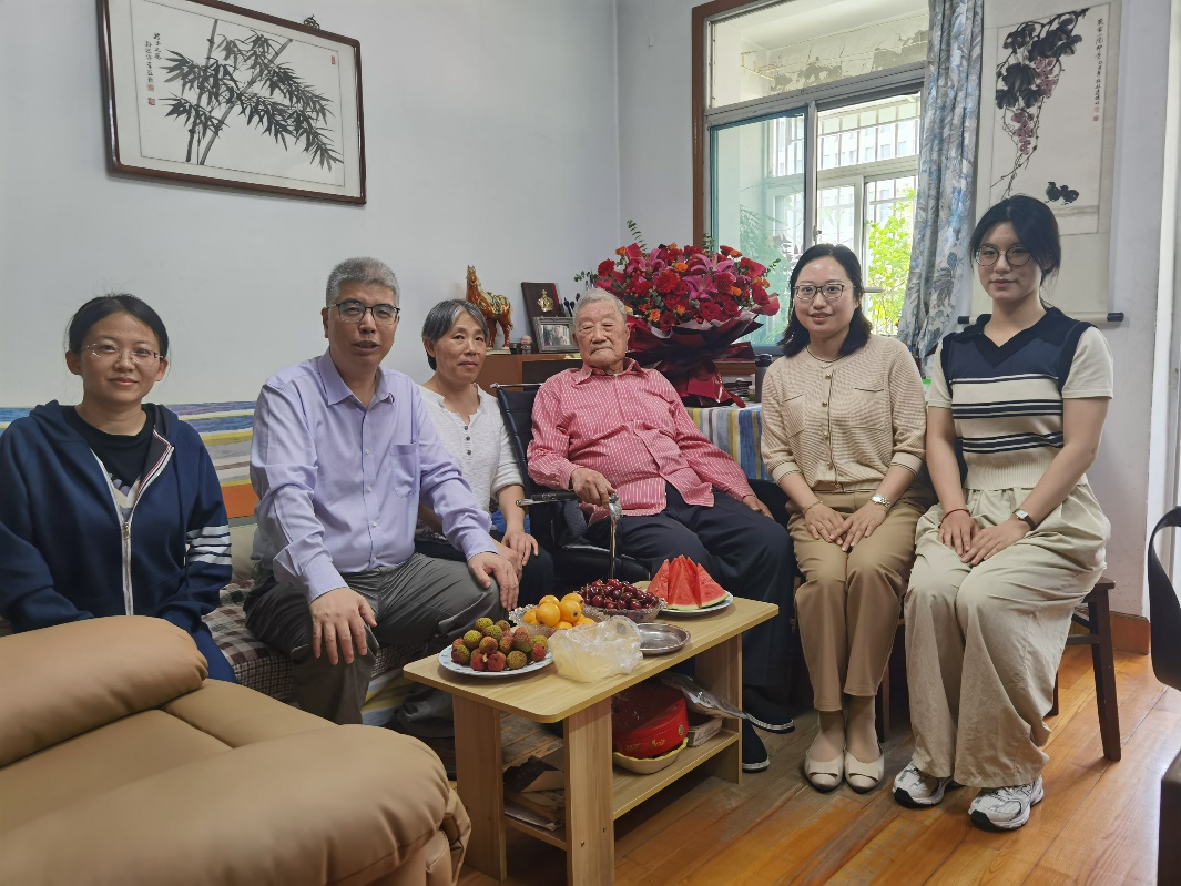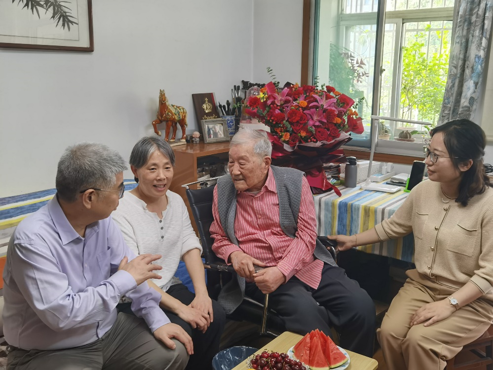 在喜迎博彩论坛 建校122周年之际,博彩论坛 退休老师孙达先生迎来了102岁寿辰。2024年5月18日上午,博彩论坛 党委书记李满春、党委副书记陈卉和博彩论坛 师生代表地理信息科学系蒲英霞、章钊颖、李满钰一行5人,专程来到北京西路二号新村孙达先生家里,敬呈鲜花、蛋糕与果篮等礼品,代表全院师生向孙达先生送去生日祝福,祝孙达老师生日快乐、身体健康、福如东海、寿比南山,感谢老一辈教师为地理学学科建设、人才培养做出的重要贡献。