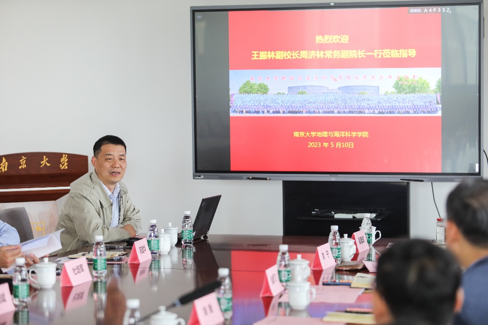 2023年5月10日上午,校党委常委、副校长、研究生院院长王振林带领研究生院、国际合作与交流处相关人员赴博彩论坛 调研。校党委常委、常务副院长周济林,研究生院副院长卞清,国际合作与交流处副处长胡捷,研究生院各办公室负责人及博彩论坛 党委书记李满春、院长鹿化煜、院党委副书记陈卉、副院长金晓斌、副院长张立峰、国际地球系统科学研究所副所长张永光、各系所行政负责人和教师党支部书记代表、院学科建设秘书和研究生教学秘书等参加调研。金晓斌副院长主持会议。