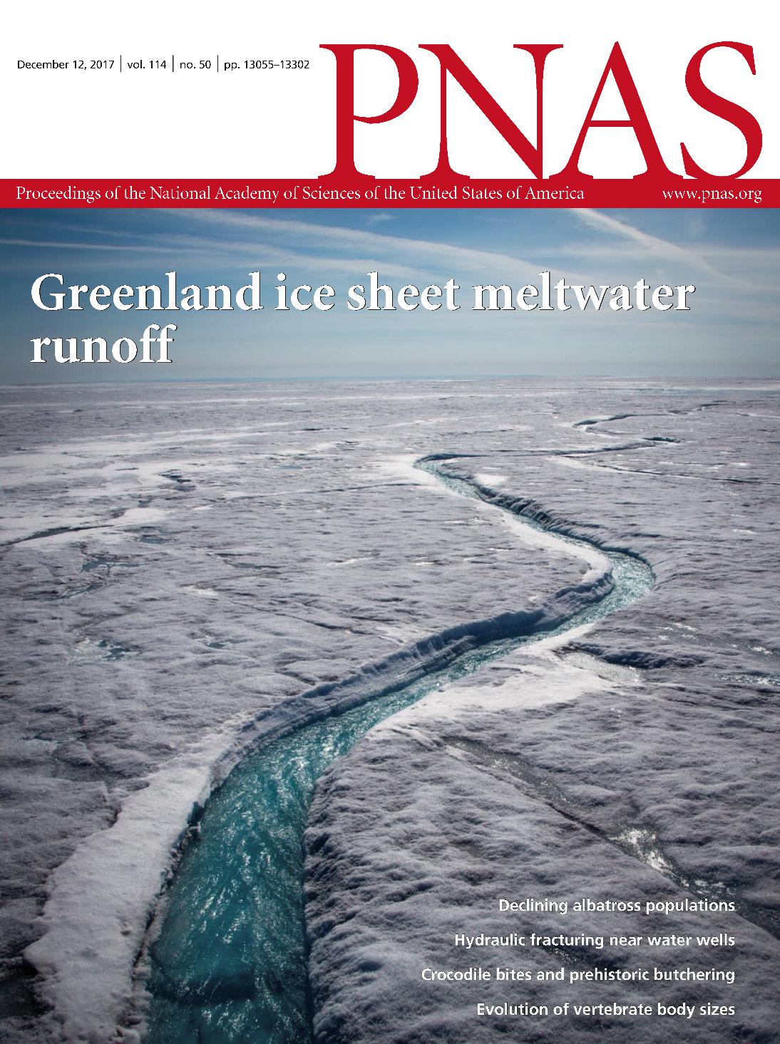图1. PNAS封面:格陵兰冰盖表面径流
