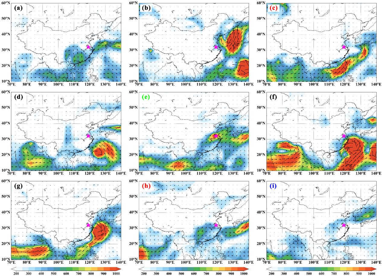 图3:2013-2021南京短时强降水事件期间整层水汽通量场