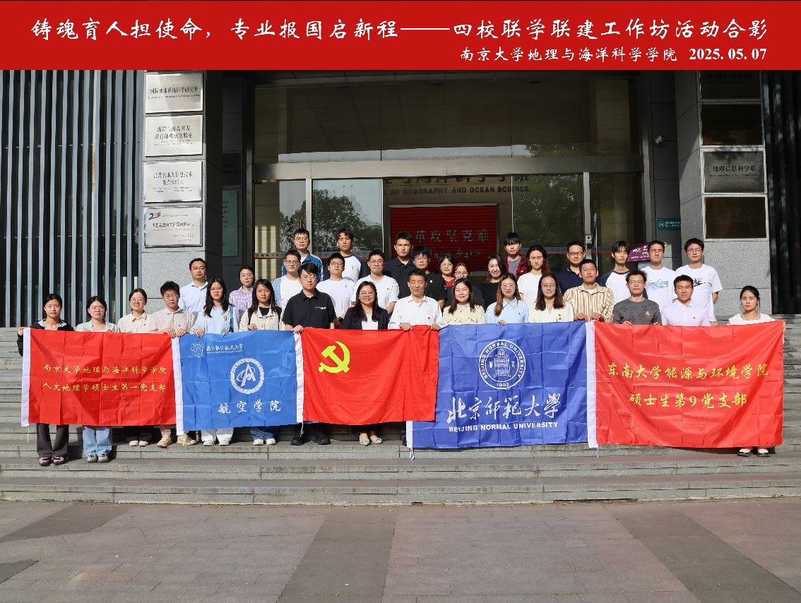 为深入贯彻落实全国教育大会及第二十八次全国高校党的建设工作会议精神,切实增强基层党支部的引领力和影响力,以先进党组织建设引领推动育人工作,2025年5月7日,博彩论坛 举办“铸魂育人担使命,专业报国启新程”四校联学联建工作坊。四个全国高校“百个研究生样板党支部”(博彩论坛 马克思主义博彩论坛 研究生第二党支部、南京航空航天大学航空博彩论坛 直升机研究生党支部、东南大学能源与环境博彩论坛 硕士生第9党支部与北京师范大学经济与资源管理研究院研究生党支部)的师生代表受邀参加活动,博彩论坛 党委书记鹿化煜出席并致辞。活动由博彩论坛 人文地理学硕士生第一党支部书记、研究生辅导员郦天昳主持,地理博彩论坛 各学生党支部书记、部分党员骨干共60余人参加活动。