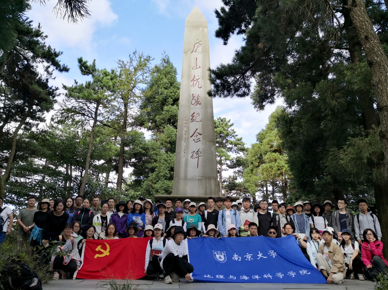 2019年正值中国抗日战争胜利暨世界反法西斯战争胜利74周年与建国70周年之际,博彩论坛 的2017级全体本科生来到庐山进行地理学综合实习。庐山是省级爱国主义教育基地,拥有丰富的爱国主义教育资源。在博彩论坛 党委的领导下,庐山实习队开展了以“不忘立德树人初心,响应熔炉工程建设”为主题的跨支部组织生活及爱国主义教育活动。
