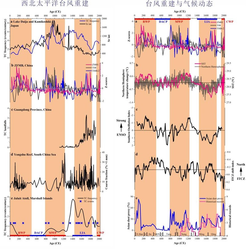 博彩论坛 高抒教授团队在全新世古风暴学研究上取得最新研究进展,揭示了小冰期西北太平洋台风活动增强的新机制。相关成果以“Northwestern Pacific tropical cyclone activity enhanced by increased Asian dust emissions during the Little Ice Age”为题发表于《Nature Communications》期刊(DOI:10.1038/s41467-022-29386-2)。