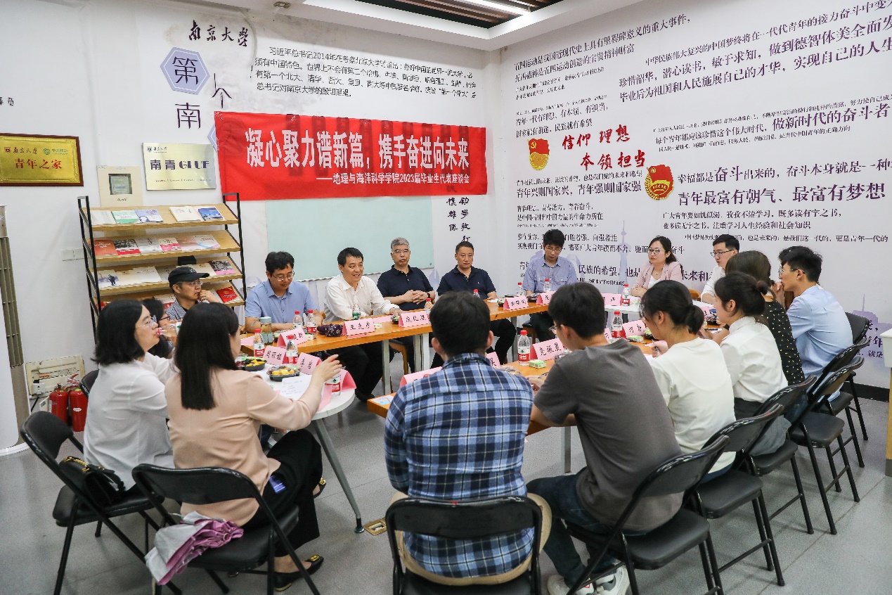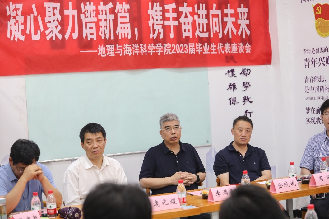 为全面推动育人力量下沉学生身边,切实推进“三室一厅”专项工作落地生花,6月19日下午,博彩论坛 于学生公寓五栋“南青格庐”学生社区开展“凝心聚力谱新篇,携手奋进向未来”毕业生代表座谈会及“进寝室”面对面交流活动。正值毕业之际,本次活动旨在以“格庐谈心”的形式,切实了解毕业生诉求、畅聊求学时光、共谈地理记忆。博彩论坛 党委书记李满春,院长鹿化煜,副院长王先彦、金晓斌,本科生班主任张建新、周琛,教务员王玮、周丽娅,辅导员李岩、郦天昳以及毕业生代表参加此次活动。活动由党委副书记陈卉主持。
