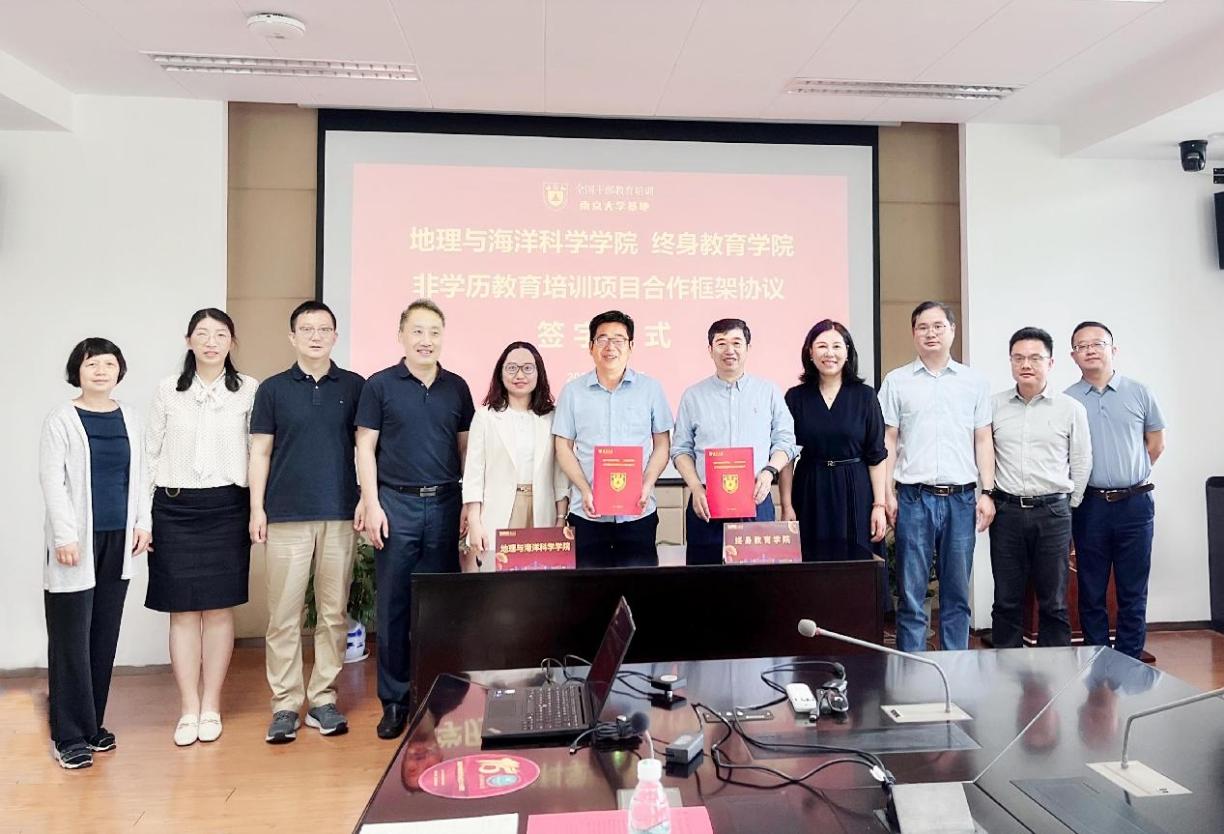 2025年6月3日上午,博彩论坛 与终身教育博彩论坛 非学历教育培训项目合作框架协议签署仪式在仙林校区昆山楼举行。全国干部教育培训博彩论坛 基地领导小组办公室主任、终身教育博彩论坛 院长韩顺平,全国干部教育培训博彩论坛 基地领导小组办公室副主任、院长助理陈广侠,我院院长王先彦、党委副书记陈卉、副院长金晓斌、副院长刘绍文、副院长周雨霁以及相关部门和项目负责人共同参与。仪式由副院长杨康主持。