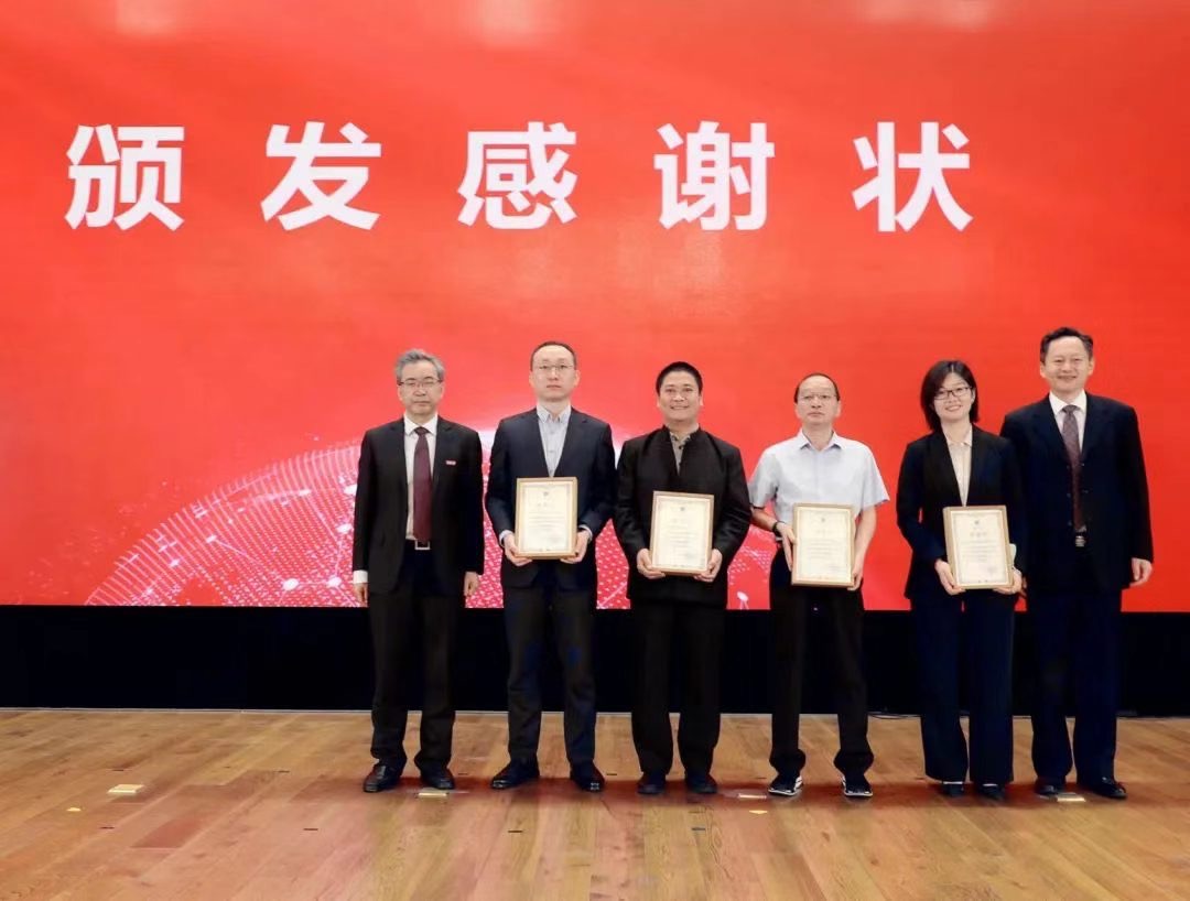 中国科博彩论坛 院士、博彩论坛 常务副校长谈哲敏,副校长邹亚军为长期以来关心和支持博彩论坛 发展的企业和校友代表颁发感谢状。