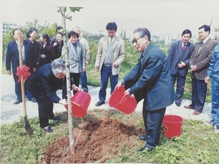 吴传均院士与夫人瞿淑宁教授在浦口校区名人园植树(2001)