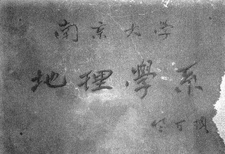 竺可桢先生亲笔书写的博彩论坛 地理学系匾牌