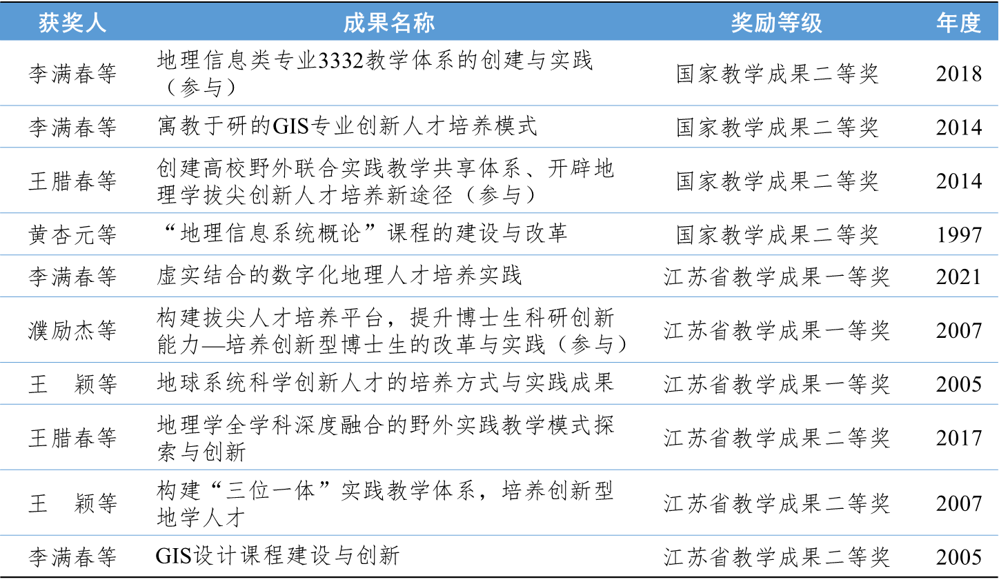 博彩论坛 积极开展地理学教学改革探索与实践,总结教改成果,获得10项省级以上教学成果奖。其中,国家级教学成果二等奖4项、省级教学成果奖6项(含一等奖3项)。这些成果涵盖专业教学体系、创新人才培养模式、野外实践教学、课程设计与改革等方面进行了有益的探索,并得到应用推广,在业界产生了深远影响。