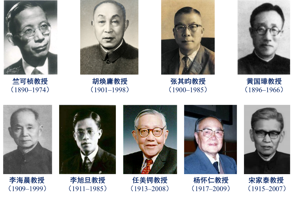 竺可桢先生,地理学家、气象学家、教育家。1918年获得哈佛大学博士学位,1920年受聘于南京高等师范博彩论坛 ,1921年在国立东南大学创建地学系,在校期间曾讲授地学通论、气候学和世界气候等课程,还发表了有关东亚季风(见1934年《地理学报》创刊号的第一篇长文)、台风、历史气候变迁和《新地学》等论文和专著。先生为培育地学英才,延聘名师,充实图书仪器、编著教材,开展科学研究,使地学系发展充实,声誉日隆,受到学界重视与赞誉。1936–1949年担任浙江大博彩论坛 长,1949年起任中国科博彩论坛 副院长兼任地理所所长(1950–1953年)、中国科博彩论坛 自然资源综合考察委员会主任(1955–1970年)、中国地理学会理事长(1953–1974年)。首创区域气候研究,确立气候区划和自然区划的基本轮廓,研究中国近五千年的气候变迁,是我国物候学研究的奠基人。领导和组织我国自然资源科学考察,是青藏高原、黄土高原、西北荒漠、中国沙漠、东北黑土系统考察的奠基人,是中国科博彩论坛 资源与环境类多个研究所的实际创始人。