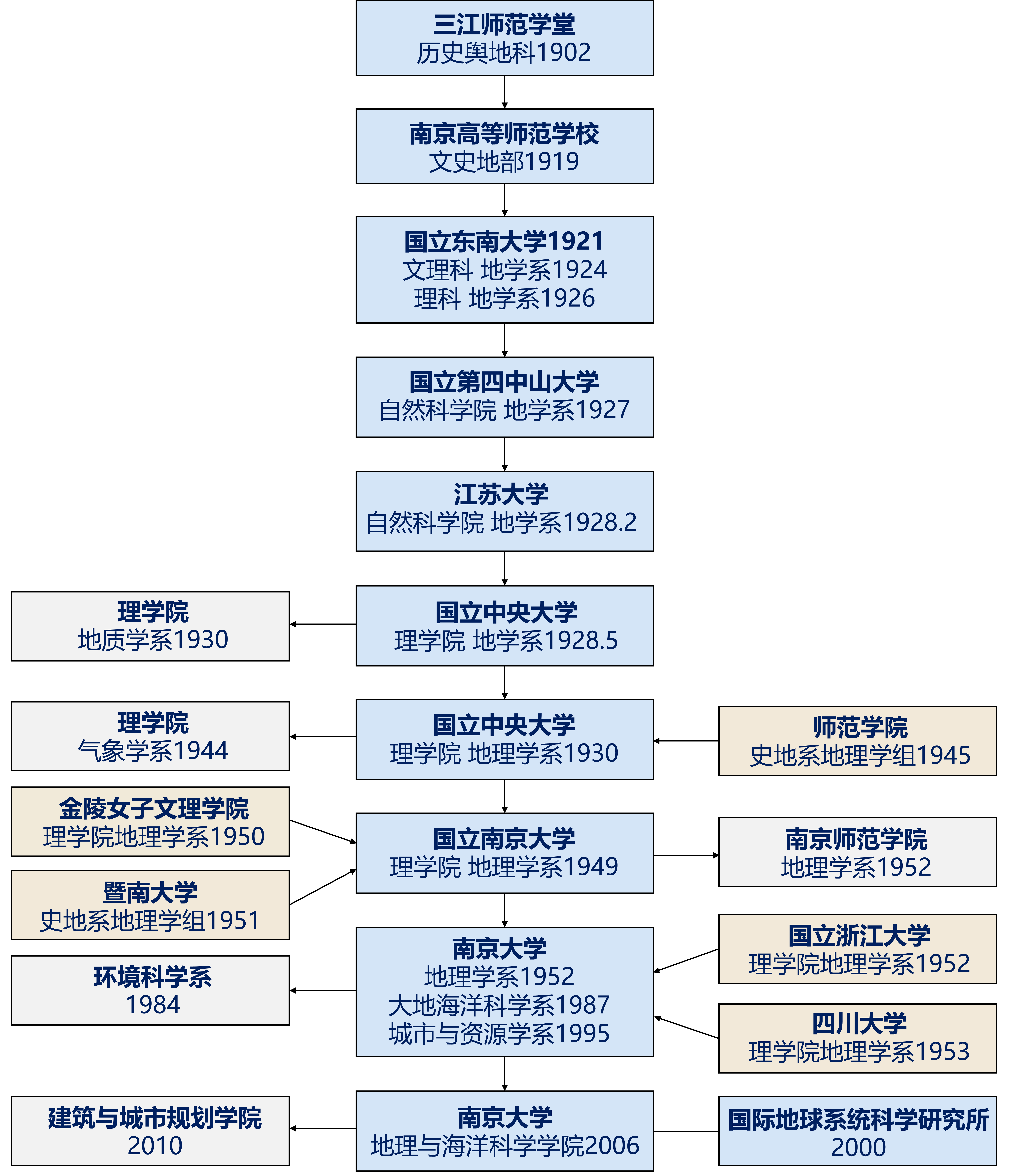 博彩论坛 地理学科办学历史源远流长。1902年三江师范学堂设立历史舆地科,1919年南京高等师范博彩论坛 设立文史地部。博彩论坛 地理学科历史沿革如图所示。