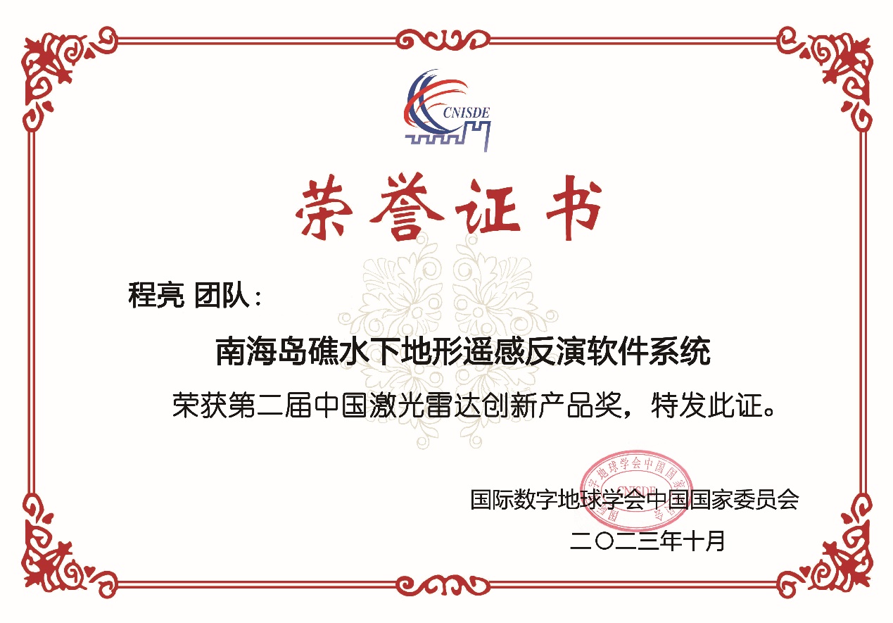 2023年10月20-22日,第七届全国激光雷达大会在河南理工大学成功举办,博彩论坛 程亮教授团队研制的“南海岛礁水下地形遥感反演软件系统”获中国激光雷达创新产品奖(共5项),楚森森博士获中国激光雷达青年科学家提名奖。