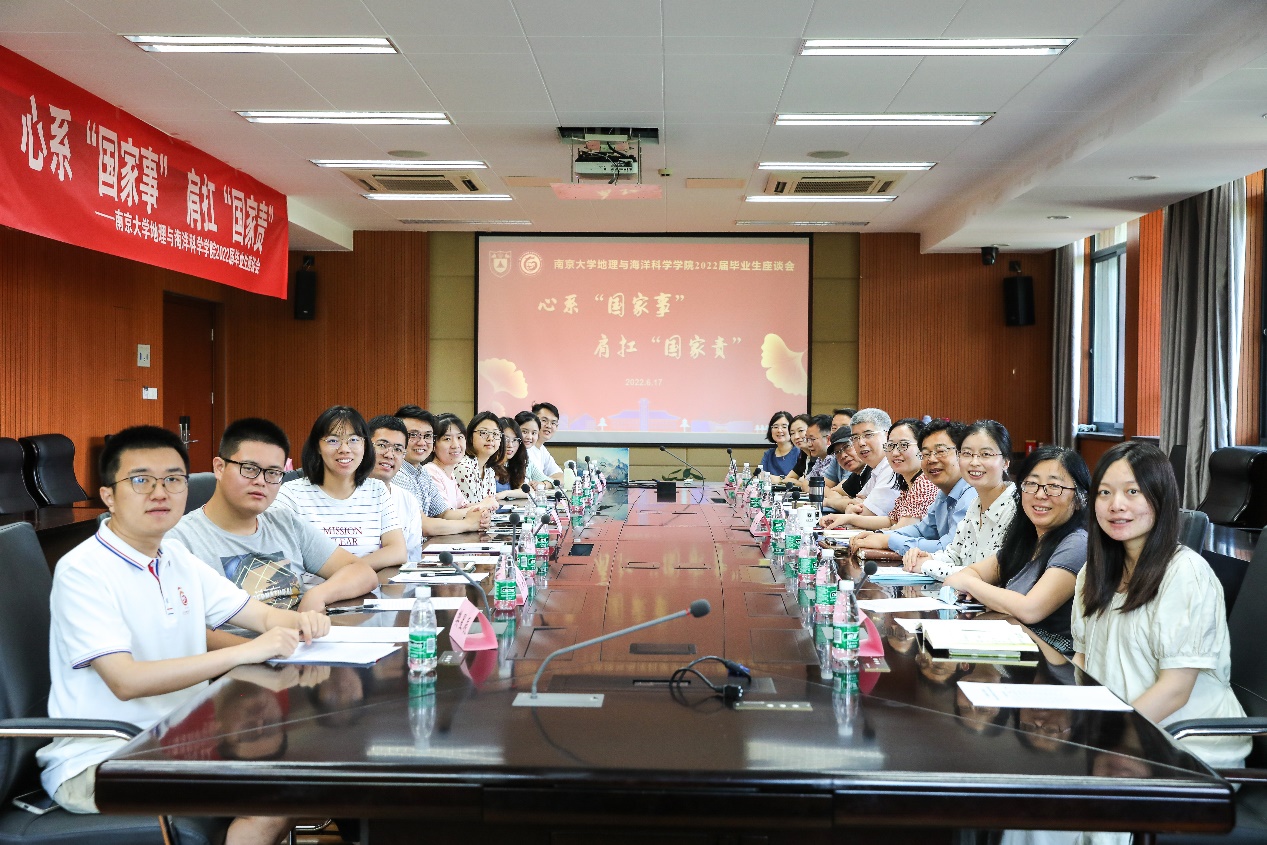 6月17日,博彩论坛 组织召开“心系‘国家事’,肩扛‘国家责’”2022届毕业生代表座谈会,鼓励毕业生牢记习近平总书记嘱托,心怀报效国家、服务人民之志。院党委书记李满春,副院长王先彦、金晓斌、张立峰,班主任、辅导员、教务员,以及10位2022届毕业生代表参加了座谈会。会议由院党委副书记陈卉主持。